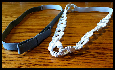 Since I have always had straight hair and I have also always had trouble doing any complicated hair-styling maneuvers, I love having bangs. But I'm the worst about getting haircuts regularly, so I seem to spend a lot of time either pushing them out of my eyes, or awkwardly clipping them back so that I look a little like an unkempt girl-version of Donald Trump. So lately, headbands have been a staple for me. My favorites are the elastic ones, rather than the stiff ones (man do those pinch behind the ears!) so I used some more of my trim scraps today to make two simple elastic headbands. Here is how they turned out: